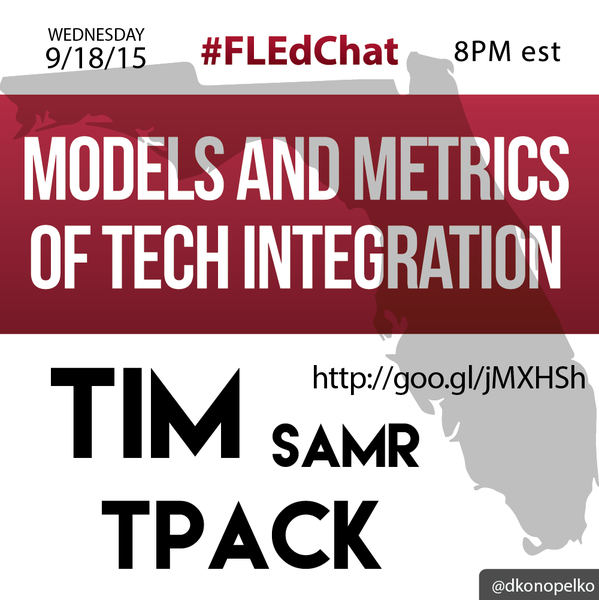 Modeling & Metrics of Tech Integration #FLedChat 9-16-2015 September 17, 2015September 17, 2015 Tammy Neil (@TG_Neil) Chat Archives